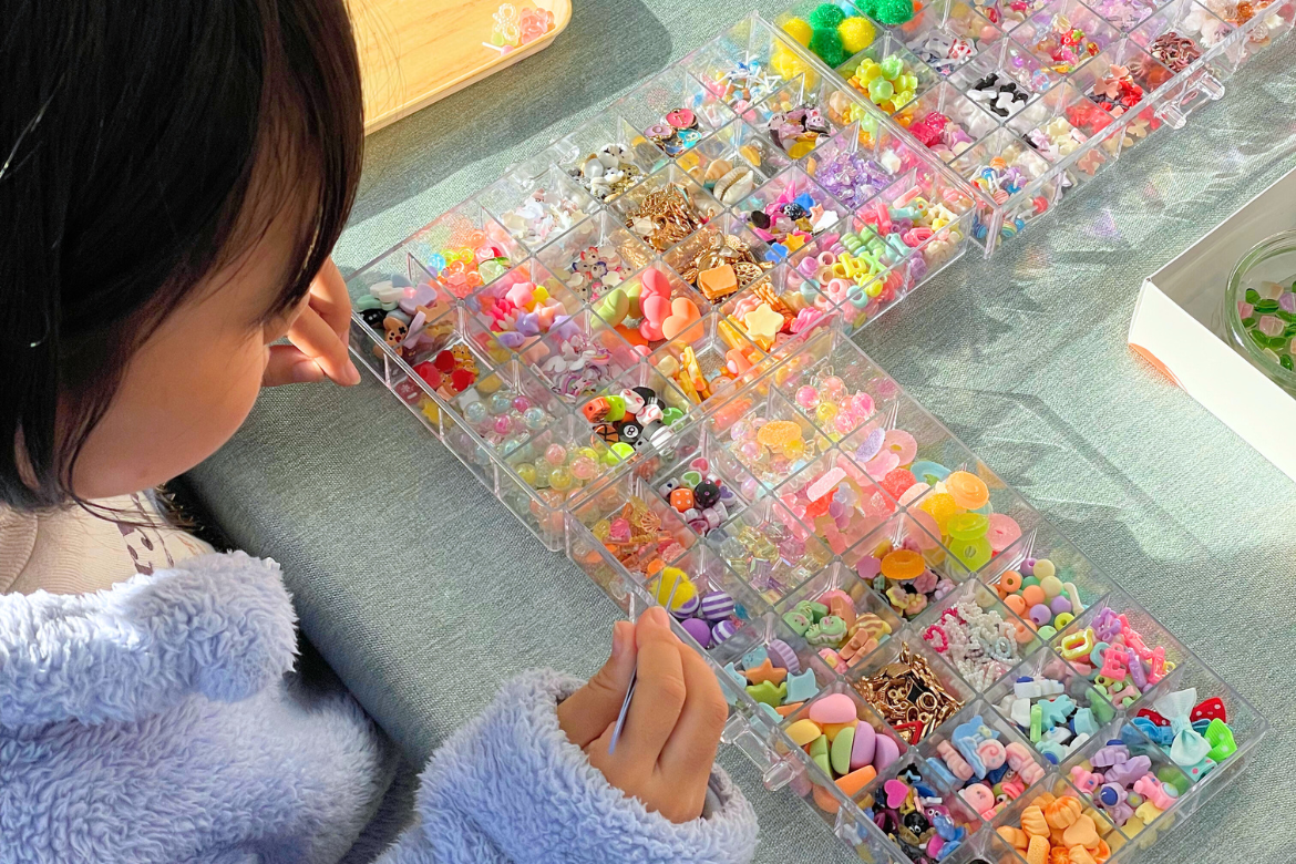 キラキラの素材を使ってつくるキーホルダーは女の子に人気!