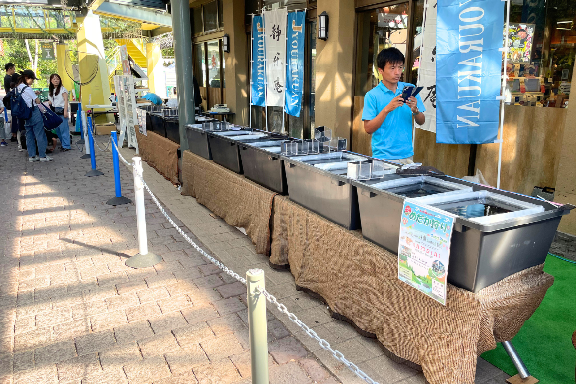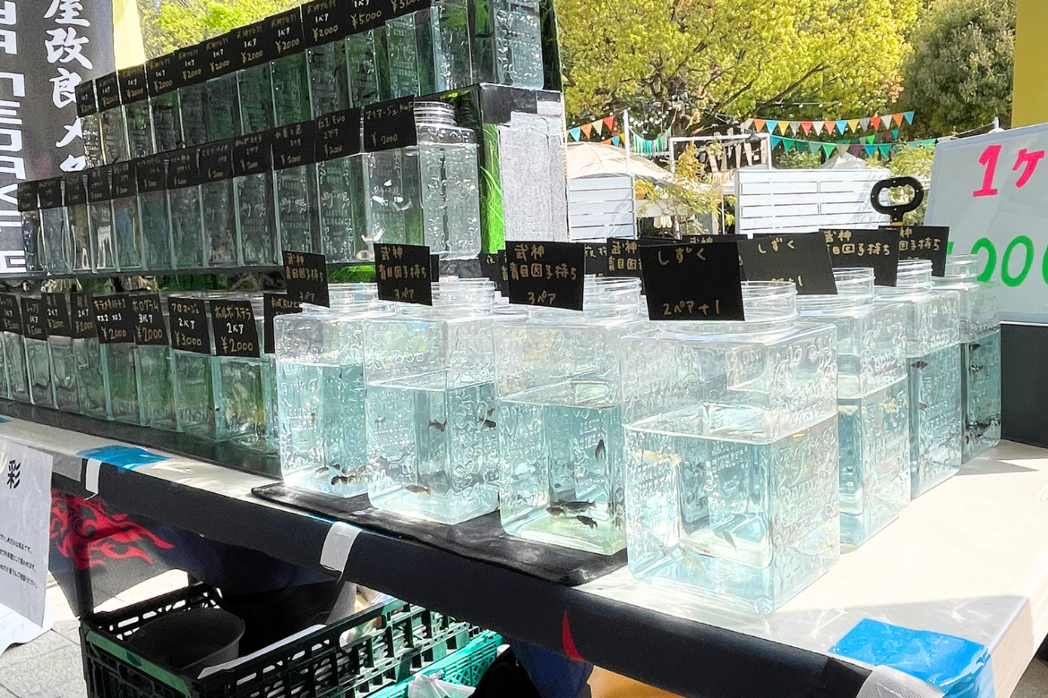 めだかの専門店が出店し、それぞれの特徴や違いを見比べながら、お気に入りの一匹を選べます。