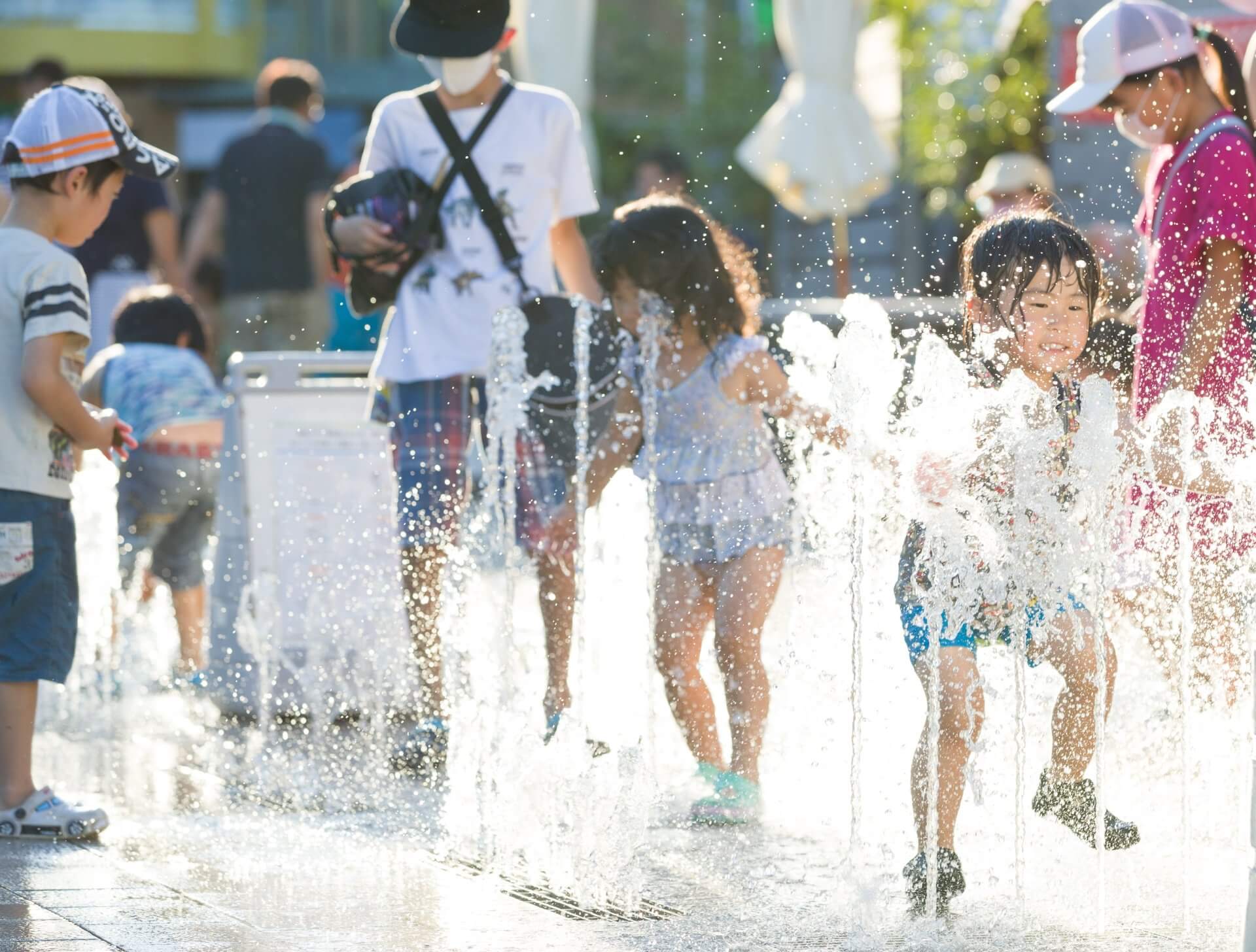 オアシスパークには、みんなが笑顔になれる無料の水遊びスポットが充実