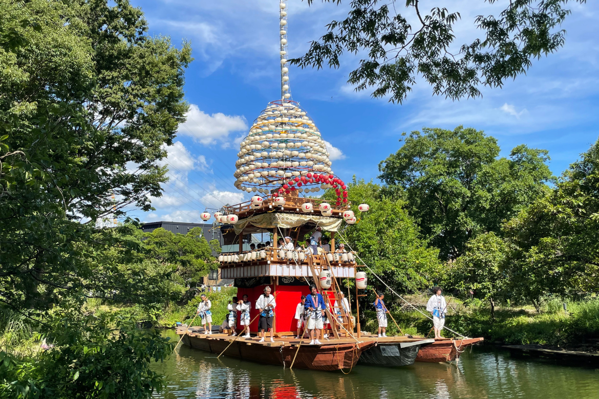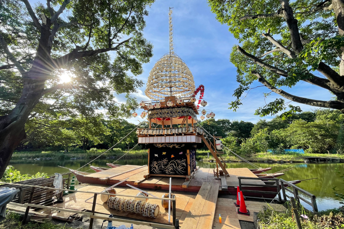 木曽川水園に浮かぶ「舟やま」が幻想的なこのお祭りは、江戸時代から続く地元・川島の伝統ある祭事です。